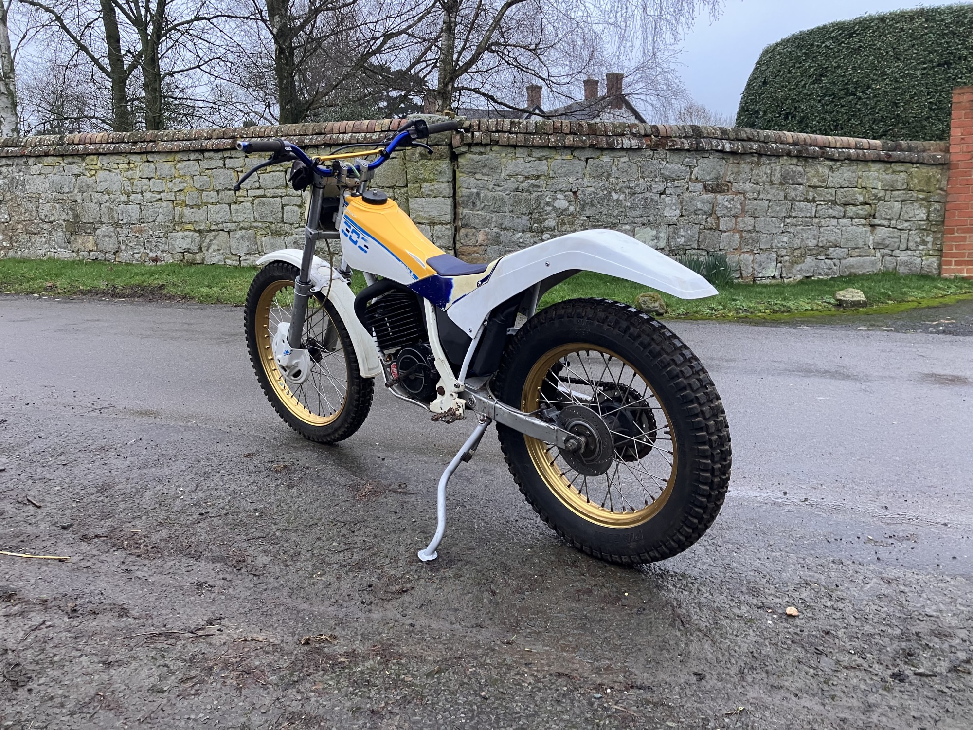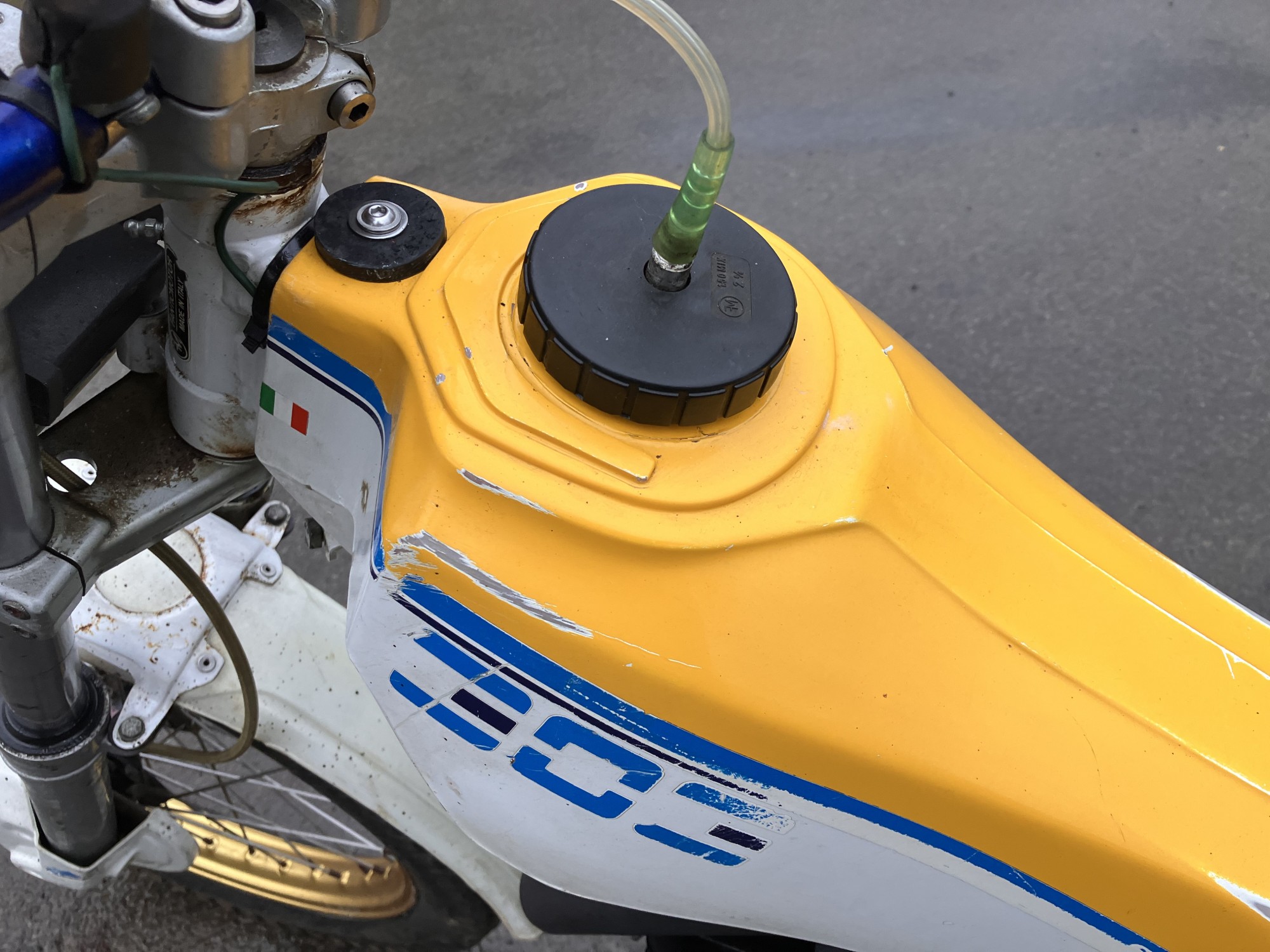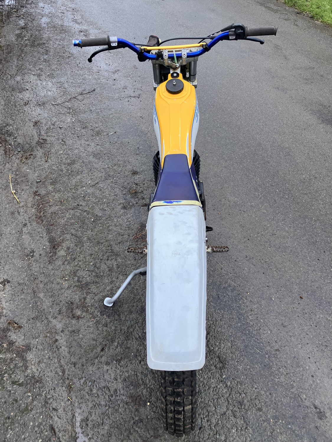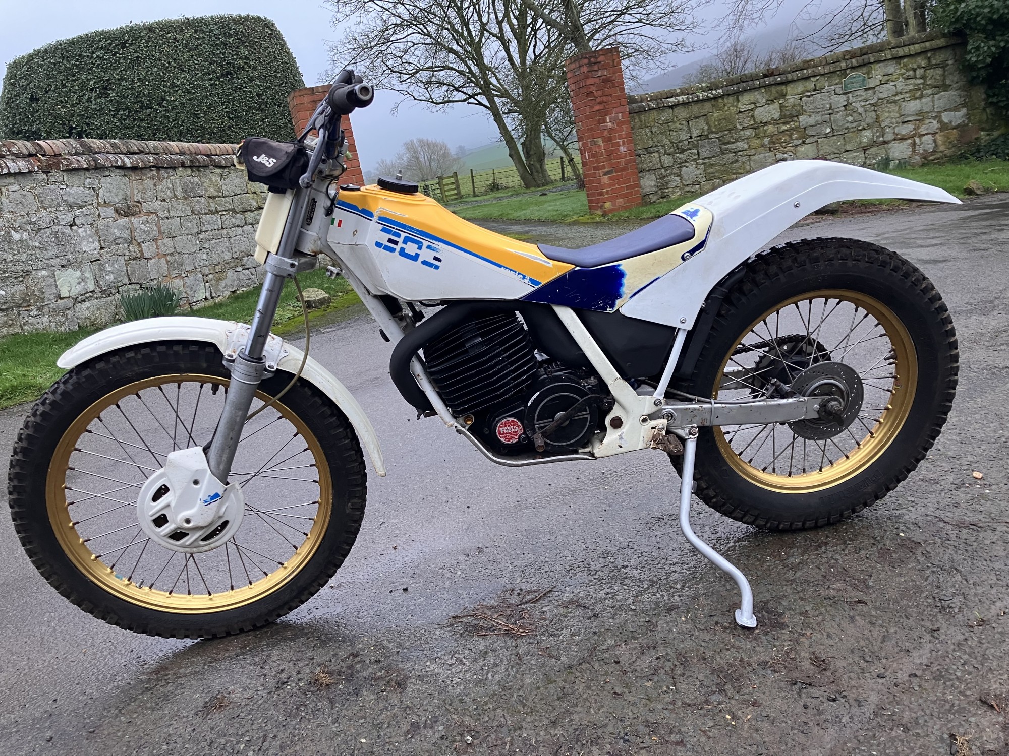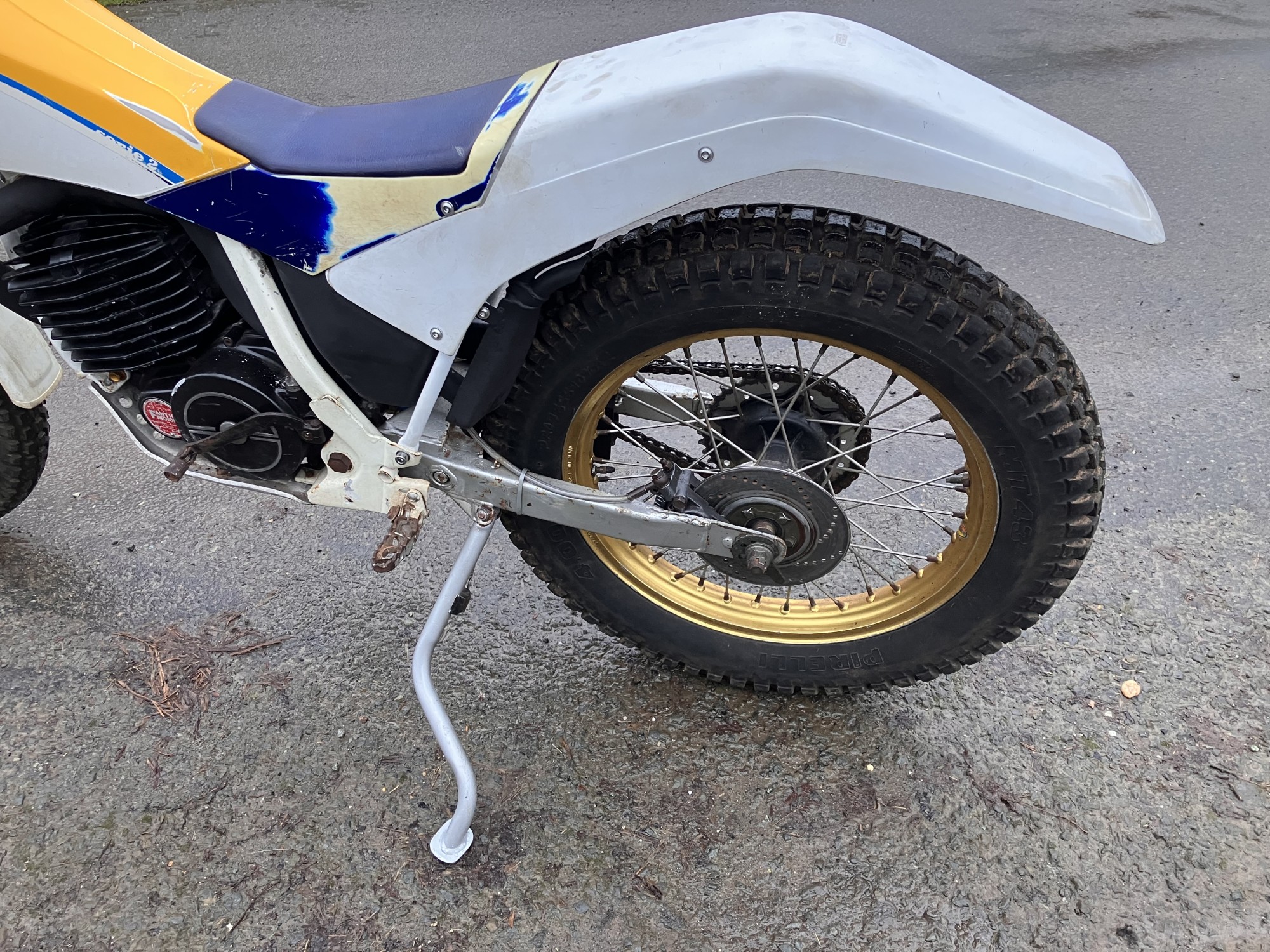 Fantic 303 series 2. Just arrived from long term storage. This machine has been unused for many years but luckily well stored. It has scrutineering marks present on major components so must have been used for major events when new, as all the marks are still there it would indicate it has had little use since.