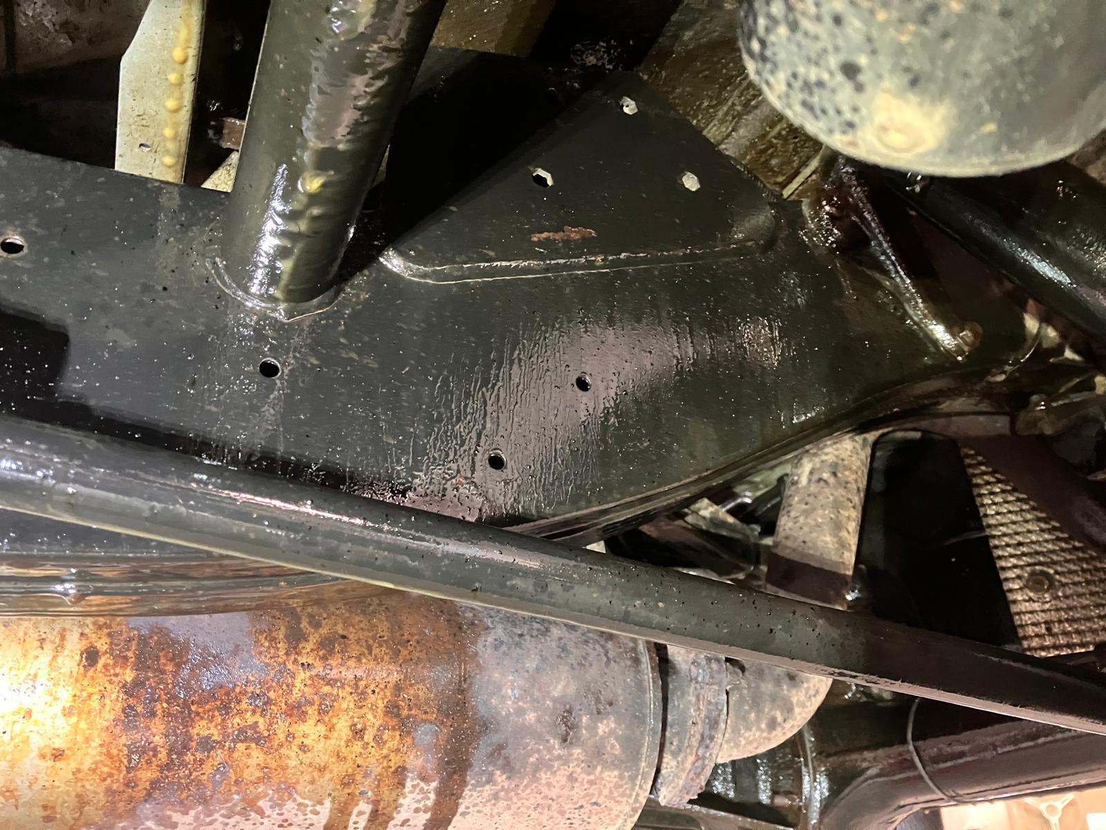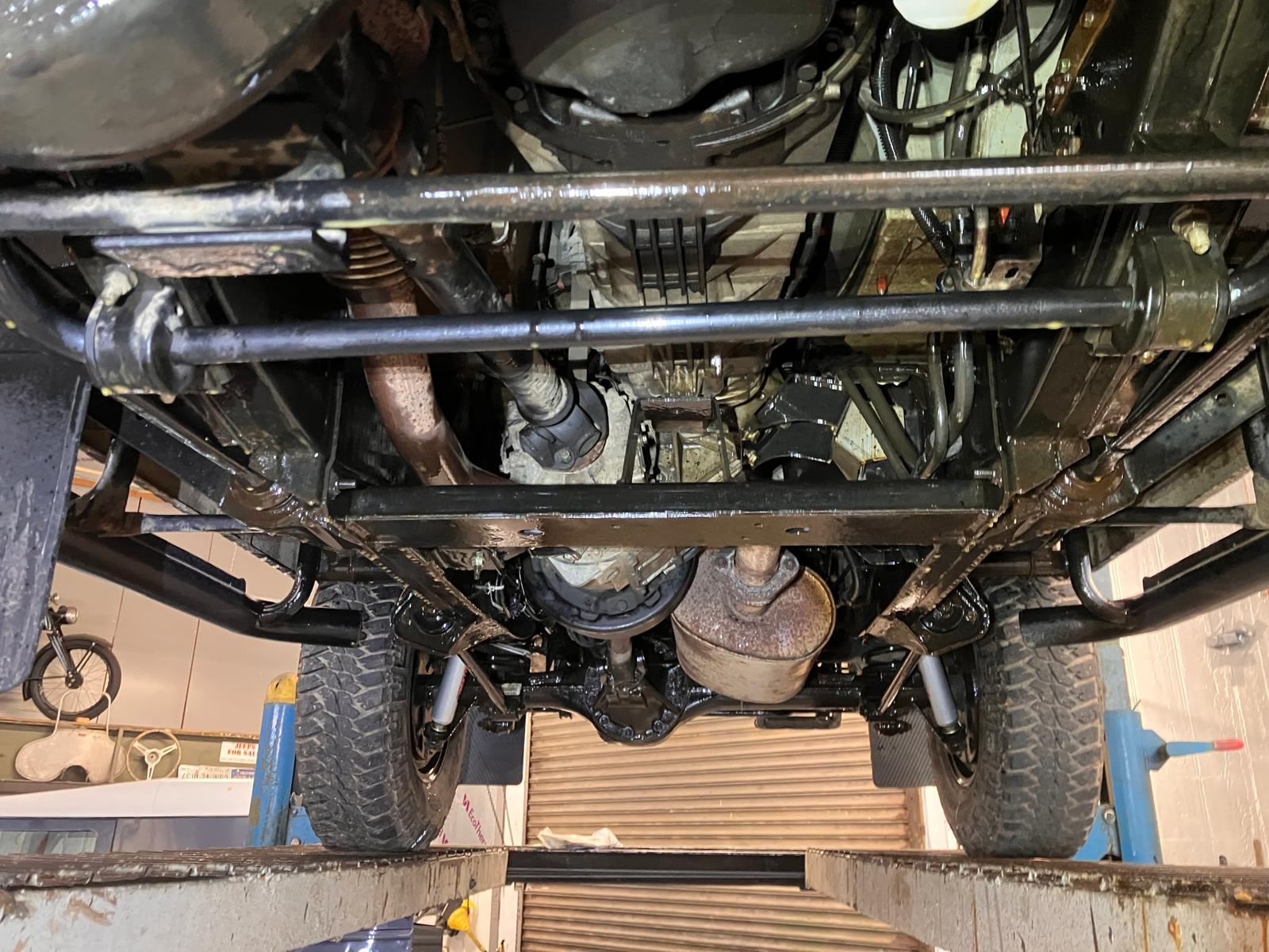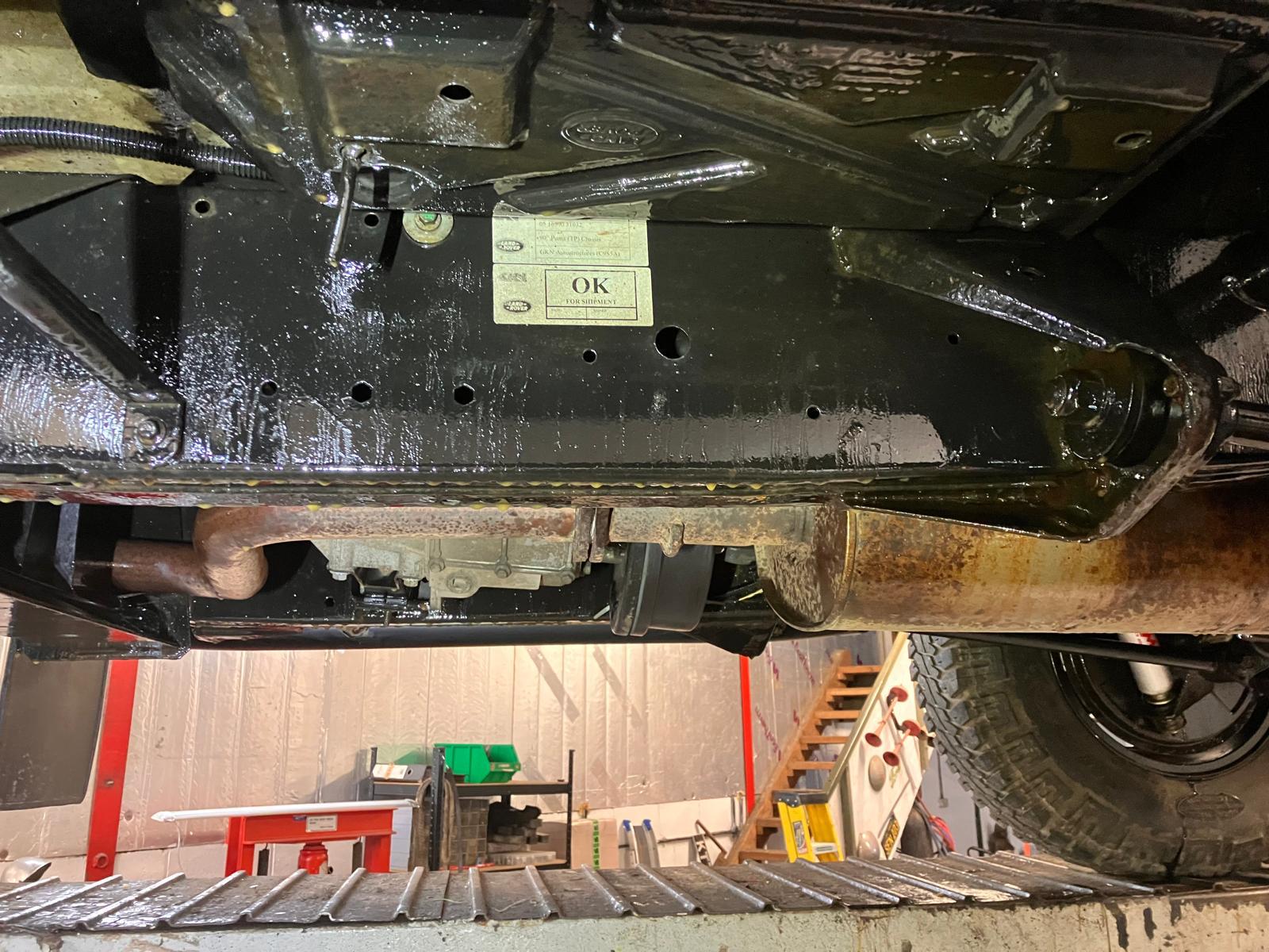 Recently the vehicle has benefitted from a full under body lanoguard protection/preservation. In the pictures shown it is freshly applied hence being wet but now in a matt drier state and looks brilliant. We have also carried out a full service whilst being on the ramp.